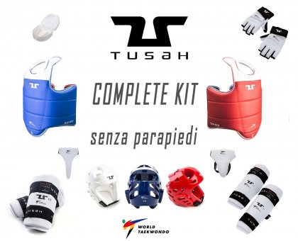 Kit Offerta Protezioni Premium Tusah per Taekwondo Omologato WT WTF Parabraccia Paratibia in Memory Foam